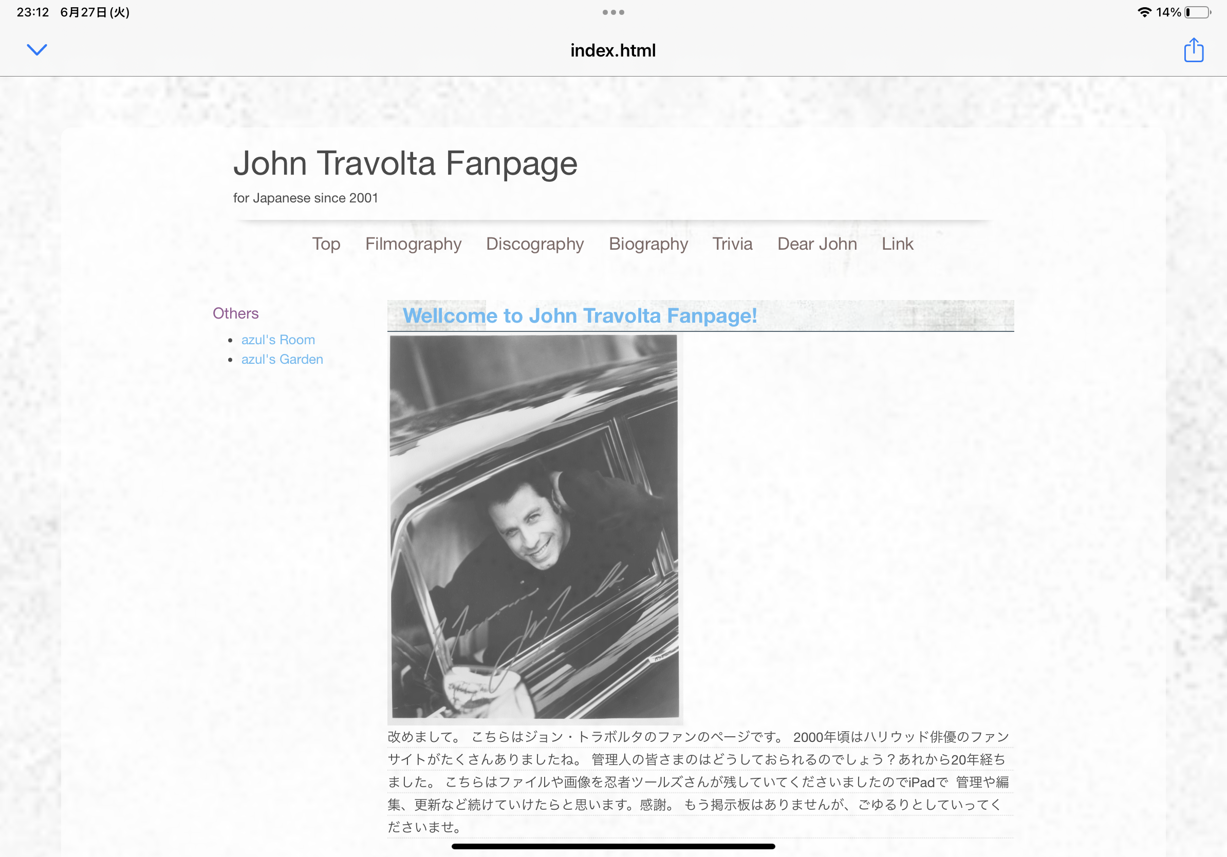 もう何もないからホームページなんて古臭いし、更新しても待ってる人いないし、もういいかなと思って適当にページを繋げて終わりにしようと思ってましたが、素材屋さんを見て回ってたら、一つぐらいテンプレートをじっくり攻略したいなと思って着手したデザインにハマってしまい、一つのドメインに三階建てのページを作った感じです。FTPManeger pro、意外に使えました。ホームページビルダーのように懇切丁寧ではないですが、構文の間違いは文字を真っ赤に変えて知らせてくれるし、文字コードが違うファイルは文字化けで知らせてくれるし、間違いに気づきやすく、一文字でもかけていたらプレビューが真っ白になって教えてくれるので助かりました。一つだけ、自分は今、「私のファイル」「iCloud」「サーバ」のどこにいるのかわからなくなるのでそこを改善して欲しいかな。