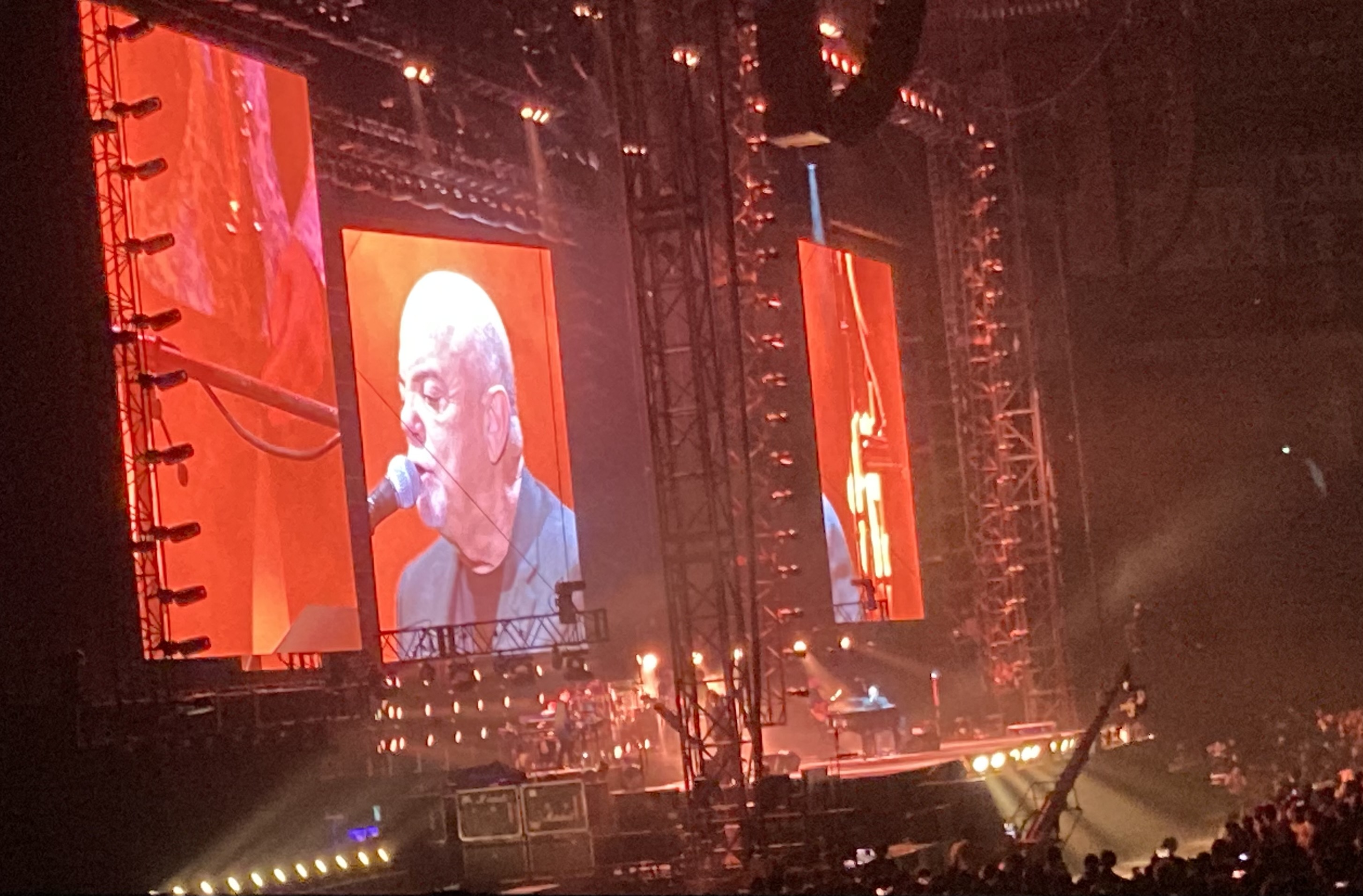 コンサートが始まる。スマホでも点灯、撮影は許可されていた。観客のスマホのライトがキラキラと煌めき、ドームに流れ始めた軽やかな曲に呼応するかのように見えて、すでにドーム内に一体感が生まれていた。曲は映画「ナチュラル」のサントラ曲で、遅れて来たルーキー役をロバート・レッドフォードが演じた。ビリーは本当に野球好きなんだなぁと思う。ここも野球場である。